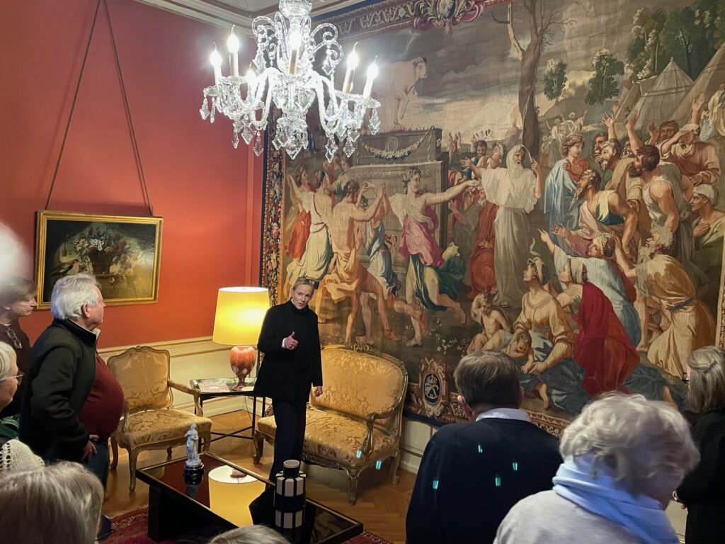 Ambassaden har til huse i en historisk bygning fra 1600-tallet. Vi fik en medrivende fortælling om dens historie fortalt af en veloplagt Karin Hoffmeyer, der er ansat i ambassaden, mens vi gik gennem de flotte historiske lokaler med bl.a. sjældne gobeliner.